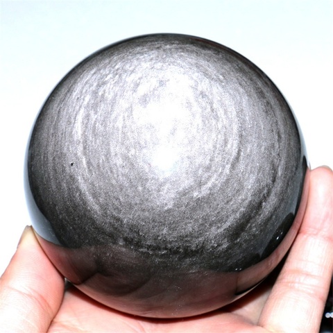 Commercio all'ingrosso artigianato di cristallo naturale grande argento ossidiana sfera Poshing Sliver ossidiana sfere per la decorazione della casa