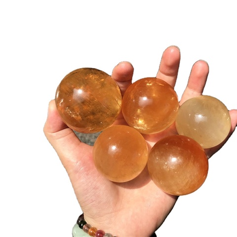 Commercio all'ingrosso di Calcite naturale Iceland spare sfere di cristallo arancione Calcite sfera per la casa
