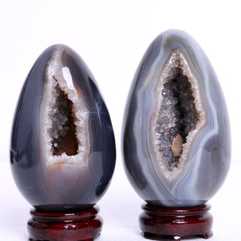 All'ingrosso artigianato di cristallo naturale Druzy agata uovo intagliato a mano agata Geode pietra uova per la decorazione domestica